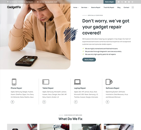 We service a wide range of gadgets including smartphones, tablets, laptops, desktops, smartwatches, and gaming consoles.